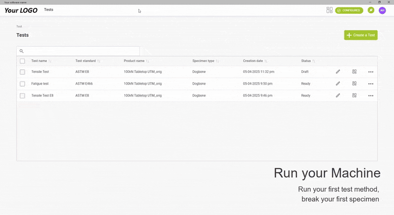Built for UTM and Fatigue testing machines, our controller is engineered to your specs and branded with your logo – always paired with our no-code platform.